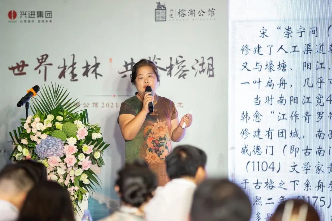 活動還特別邀請到桂林抗戰(zhàn)文化研究會會長、桂林歷史文化研究院專家委員會委員凌世君女士?;顒蝇F(xiàn)場,凌老師向來賓們娓娓道來《榕湖的前世今生》,將榕湖的歷史脈絡(luò)、人文景致生動描述,并且將其長期對于榕湖的研究及學(xué)術(shù)文章結(jié)合進(jìn)行了分享,讓所有來賓身臨其境體驗了一次"千年榕湖"穿越之旅。