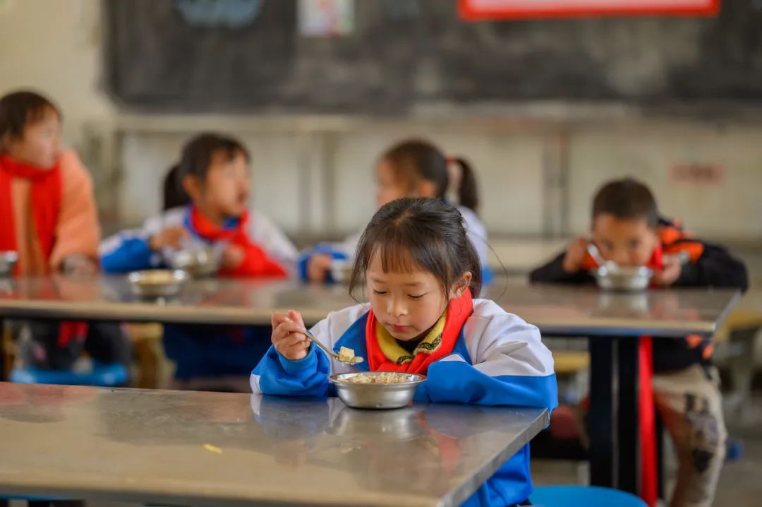 白嶺小學(xué)學(xué)生正在用餐