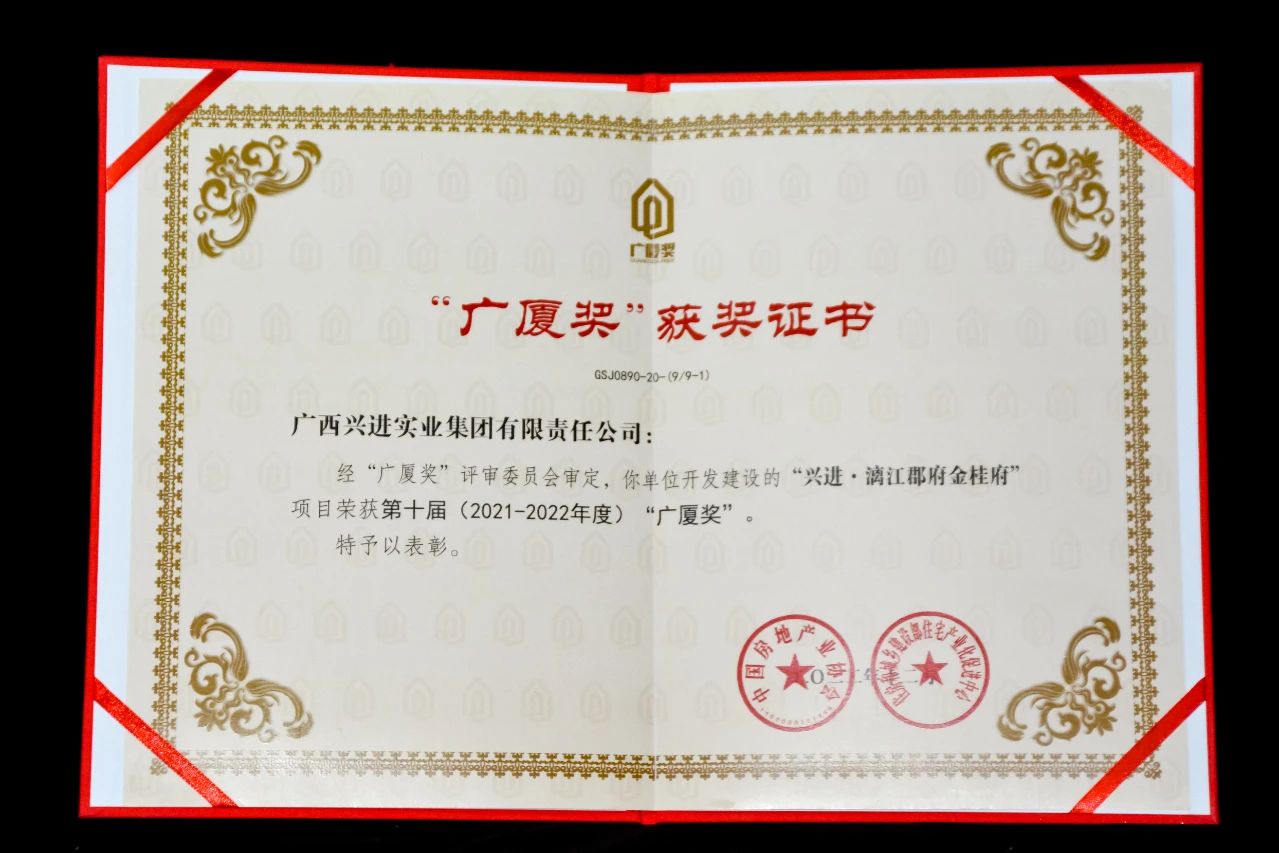 回顧2022年,興進·漓江郡府金桂府榮獲第十屆"廣廈獎"、交投&興進·江山樾斬獲2022年美國TITAN地產國際設計大賽年度大獎金獎。秉承匠心精神,不忘初心,興進集團每獲得一份榮譽,都肩負多一份責任。